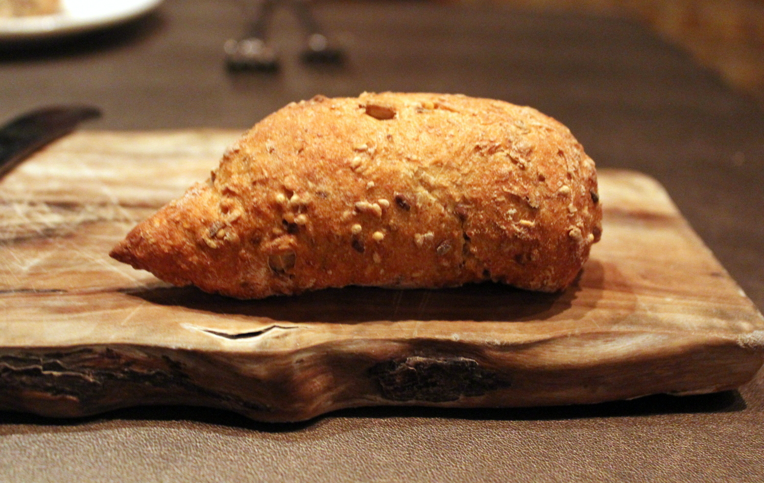 The amuse bouche was a white peach and rhubarb morsel with an herb overlay. White peaches have a sour quality that makes them more tart and thankfully less mushy than their counterparts. With the rhubarb, it made for a luscious palette cleanser of bite sized proportions. Accompanied by a seedy bread where the fluffiness was a testament to its freshness.