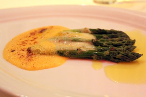 The first course was a trending vegetable, asparagus, doused in melted pecorino cheese and olive oil. With a literal bucket of melted cheese, still steaming from its freshness, this was a lusciously rich dish, ironic given that it had the most fibrous of vegetables in it. The bitterness of the asparagus was offset with the creaminess of the cheese, spiced up with a dash of paprika and balanced with the aromatic olive oil. An overall spectacular start to the tasting menu.