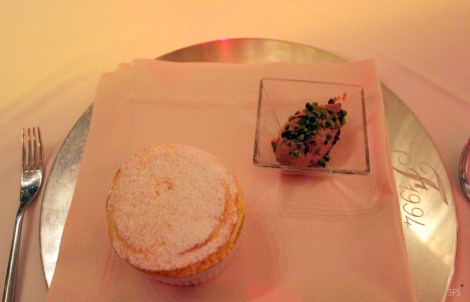 And then commenced a duo of desserts, illustriously in line with my habit. It started with possibly one of the best souffle dishes I had ever eaten. The warm passionfruit sorbet was literally steaming with both heated temper and infectious aroma, coupled with pistachio and chocolate gelato. But even my chocoholic self could not ignore the perfection of this souffle, with transcendent flavors of the tangy, tropical passionfruit. Truly an orgasmic dessert, and I rarely ever utter that oxymoron in one emotion.