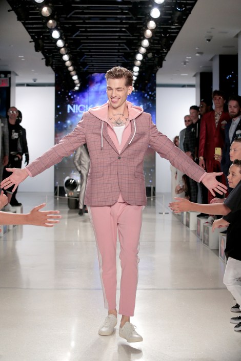 Nick Graham, known for including the mountains, a trip to Cuba, men on Mars and an underwater spectacle, chose the theme of 1969 for his latest menswear collection at New York Fashion Week Mens (NYFWM). Historically, it was the year that Apollo 11 landed on the moon and hosted Woodstock. The history dictated a lot of the styles, which while not as synchronized in thematic unity as his previous shows, created a good mix of tailoring and athleisure. There were several astronaut inspired bomber jackets in metallic silver and black, preceded by a phenomenal performance by a bunch of talented boys dressed in tees saying “Future Martians”!
