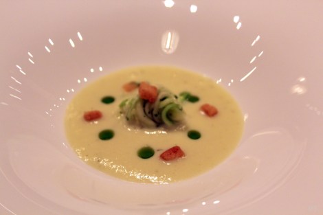 What’s the best way to elevate a soup? Make it from real butter, fresh wild mushrooms, top in with lavender and infuse it with asparagus oils for color, depth of flavor and a fibrous finish. The result was a creamy but satisfying sip that put me in the mood for a wintery day in a cozy city.