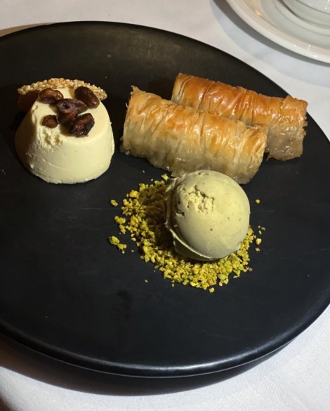 Desserts are my favorite of all meals, and with baklava in the selection which was a consistent favorite. It was with pistachio ice cream so succulent I could smell it’s freshness. The hand-rolled baklava was served with tahini parfait and a honey nut brittle that transported me back to the Mediterranean where I would savor the salty sea air with sweet bites of my favorite dessert.