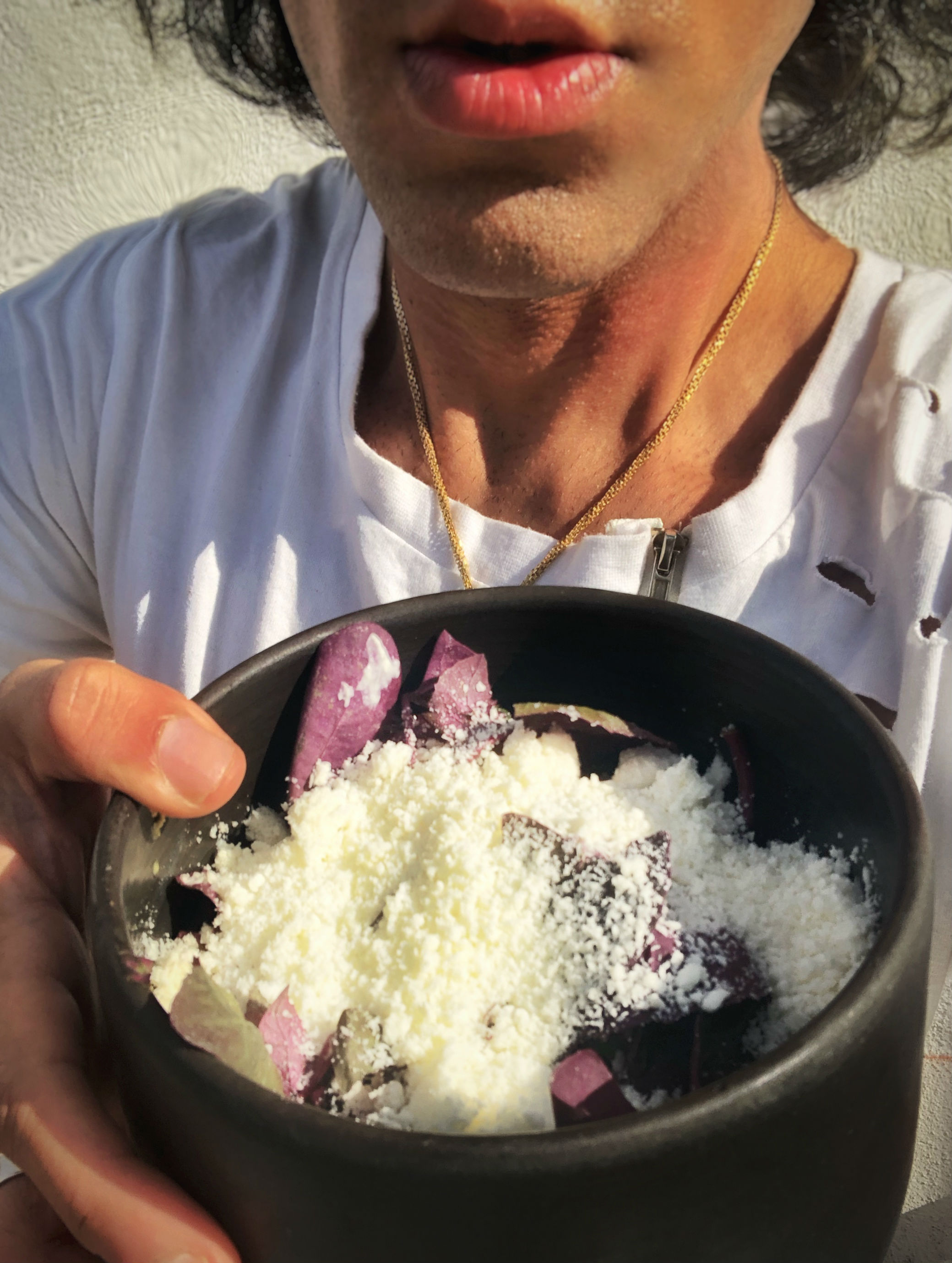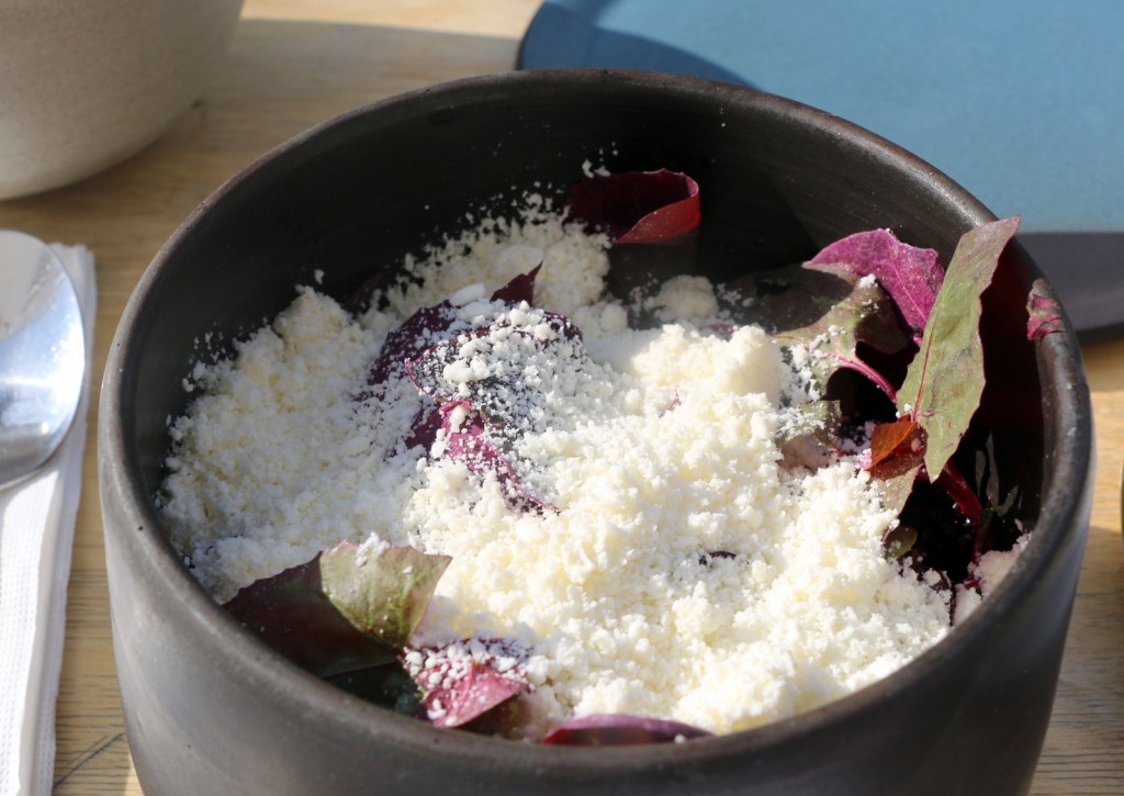 Beet and goat cheese salad remixed? This was a snowcapped mountain of fall hued terrains, which unearthed quinoa with a dive into its ceramic bowl. Beets, pumpkin seed butter, blackberry, quinoa and horseradish cream combined to give it a nutty, sour taste that was offset with the sprinkling of ‘cheese powder’. Truly satisfying and decadent.